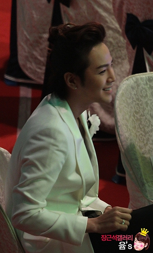 "Corrí hasta aquí desde el set de filmación de Love Rain. Arriesgué mi vida para llegar aquí (Creo que iban en exceso de velocidad durante en el camino), por lo que tuve mucha suerte de llegar a salvo. Estoy un poco nervioso para decir esto enfrente de tantos Seniors. Este año es mi aniversario 20ndo desde mi debut. El tiempo pasó volando tan rápido. Después de tantos años, hoy estoy aquí para recibir el premio que fue gracias a mi Fans, me siento muy honrado de ello."